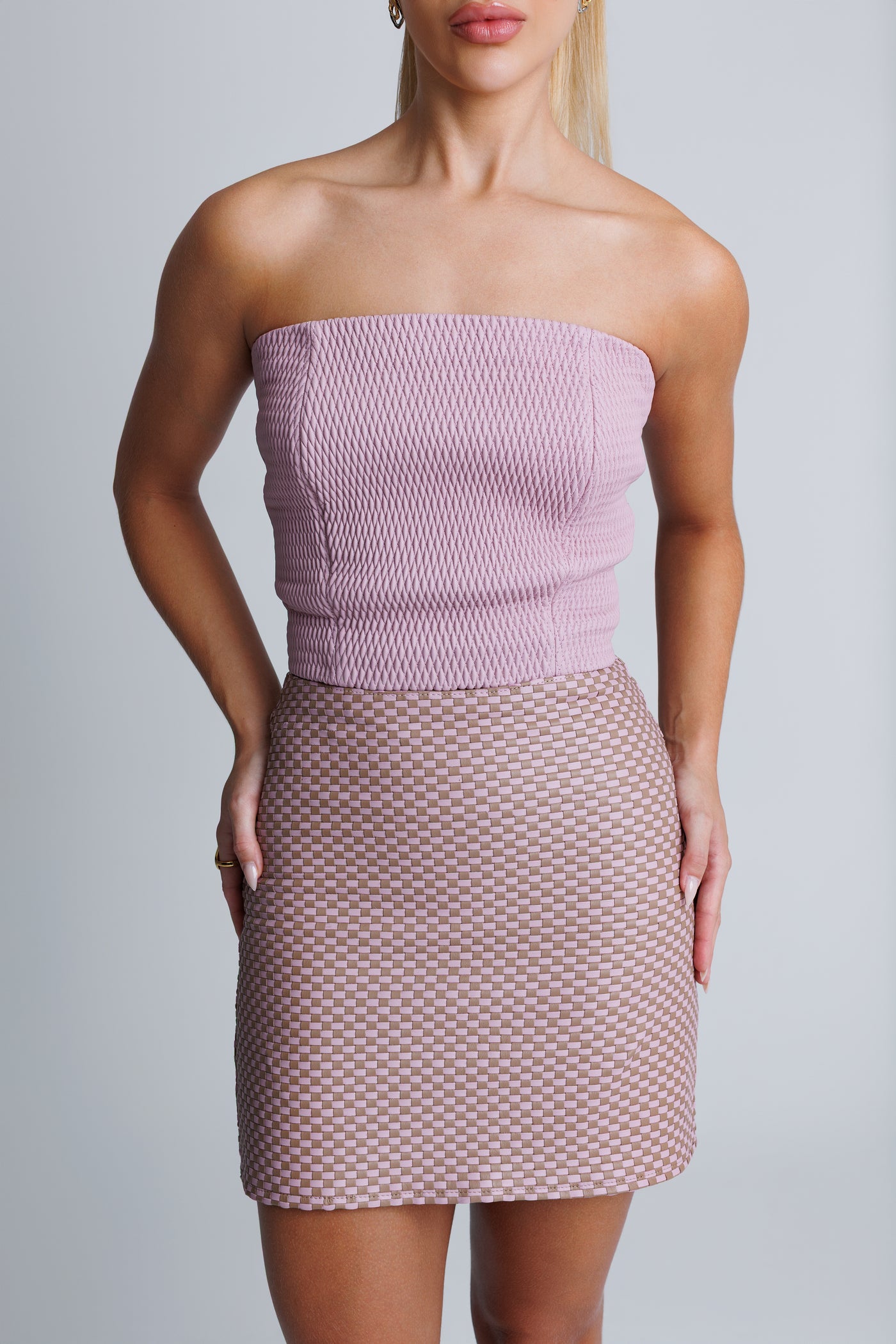 A Saia Mini em Tressê combina textura e sofisticação em uma proposta moderna e marcante. Confeccionada em couro trabalhado com técnica artesanal de tressê, revela um efeito geométrico elegante que valoriza a peça com profundidade e identidade autoral.