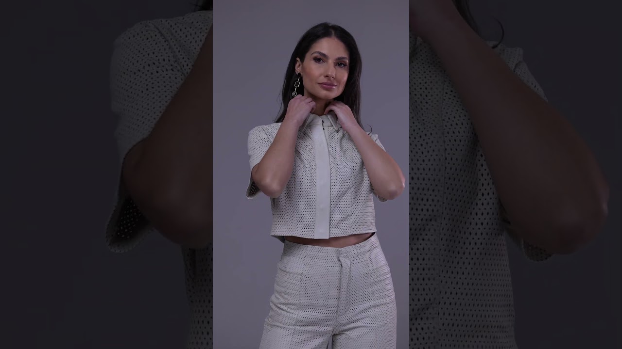 Com shape wide de caimento fluido, é confeccionada em couro pelica perfurado a laser, trazendo frescor a peça de couro no verão, forrada para conforto e acabamento impecável.