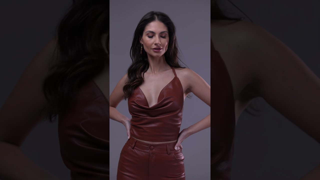 O Top Halter Chamois ressurge em uma leitura leve e ultra sofisticada, agora em couro chamois, revelando uma nova textura de poder.